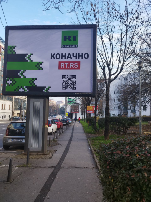 В плане свободы СМИ и альтернативных точек зрения, Сербия стоит довольно высоко в моем личном рейтинге. Переключая телевизор, раша тудей будет соседствовать с ББС, а первый канал с Украиной 24. РТ не скупится и гуляя по Белграду примерно каждые полчаса будешь натыкаться на их лаконичный рекламный плакат.