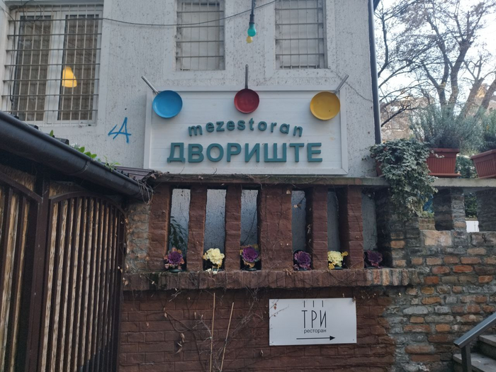"Mezestoran Dvoriste" - греческий ресторан из Мишлена(в 2022 в сербский Мишлен добавилось 5 ресторанов, но звезды так никто и не получил), который расположился во дворе жилых домов и чтобы туда попасть надо пройти через обычный подъезд.