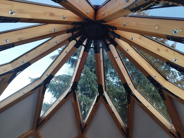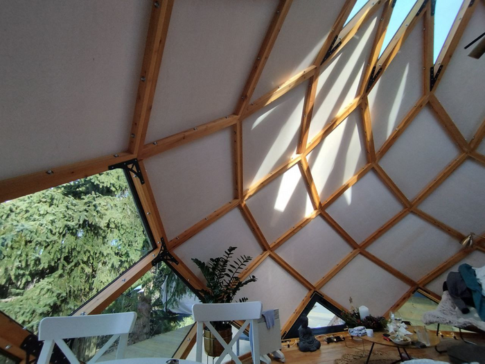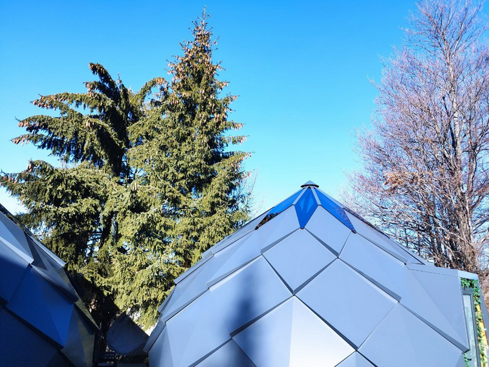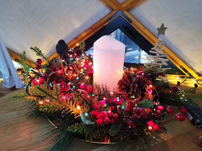 Домик на новый год был уютный. Особенно вставляло смотреть на Луну и звезды через стеклянный потолок.