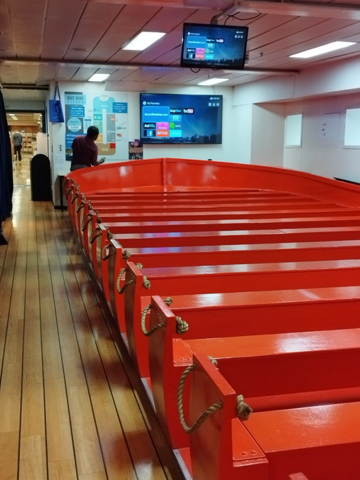 Начиналось все с обязательного инструктажа по технике безопасности, который дефакто был краткой сводкой об истории лайнера и благородной миссии, которой они несут и рассказом про их внутреннюю валюту, как и где расплачиваться. Безопасности было уделено ровно ноль внимания)