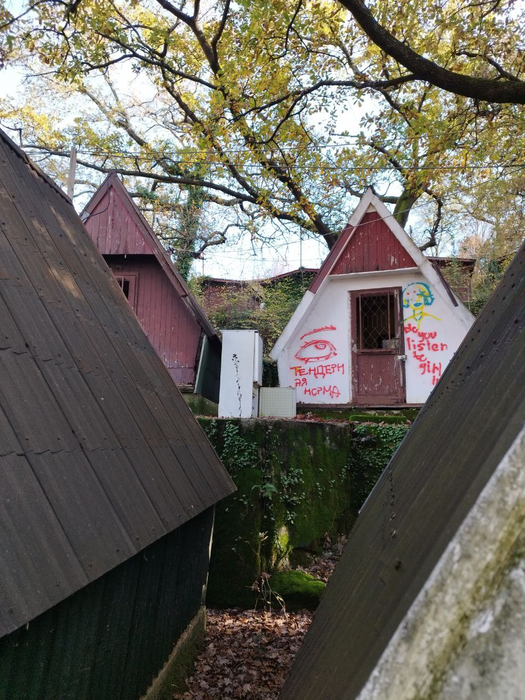 Любопытное заброшенное место в Зеленике. Похоже на детский лагерь. Еще были предположения про летнее жилье для приезжающих из всяких Босний, Албаний, горных районов Черногории на заработки, но не знаю ставили бы для них баскетбольное кольцо.