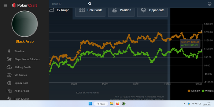 как вы видете защита BB очень широкая моя рука против диапа фиша имеет эквити 55% , и если вы фолдите в подобных ситуациях то упускаете кучу бабла но это не точно