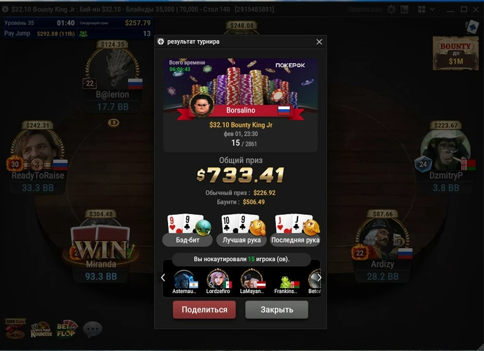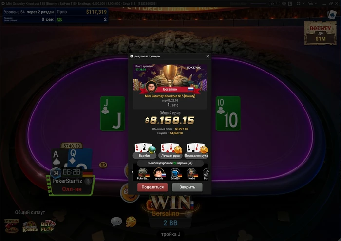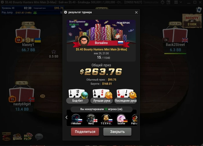 Забавно конечно что в этот день зависло ГГ ровно в тот момент когда я запушил в топ 11 свои А7 ,больше раздач не было и нажми я пасс ,то это был бы один из плюсовых пассов за мою жизнь Вообщем я пуш клиент зависает , потом возвращается и я аут 11 В других турнирах вернули средства отыграл даже чуть в плюс вроде) Где-то недоехал ещё до зависания