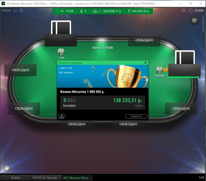 Короче тут пообщался с братом ,он человек такой работяга(не как я) Всё в жизни своим трудом. Появилась мысль что если будет 1-2 миллиона свободных можем попробовать кое-что и вот воскресенье а на ГГ есть чуть банкролла (занёс же до этого) я решаю вгрузится на 2-2.5 к примерно (давно такого не позволял себе) из них 2 турнира по 525 на выстрел)) и вроде бы эта история должна закончится либо тем что закатал ,либо тем что занёс (я же лакер) но нет.