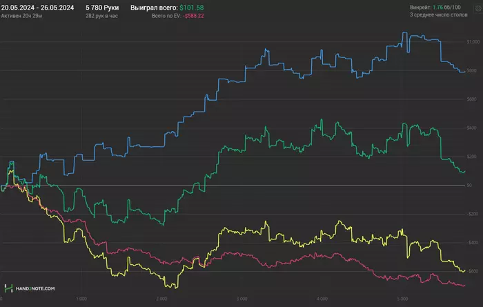 Ну что, вот и пришел даун. Первую половину недели шел еще на апчике и во второй половине рубильник четко переключили. На графике видно. Мало того, что во все флопы мимо и воторые натсы упарываются в первые, так еще и по ЕВ напереезжали. Картина маслом и, в целом, ничего нового)) Неделя тем не менее в плюсе, спасибо и на этом.