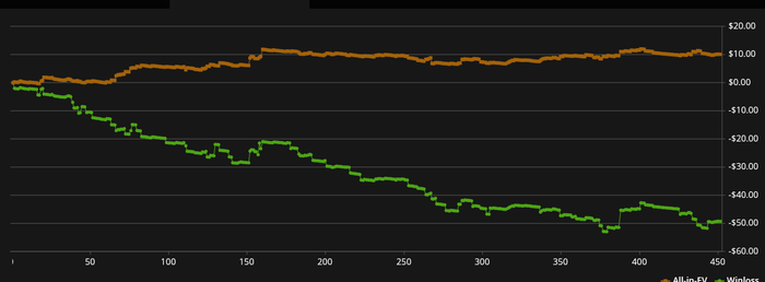 Самое интересное что на нл 2 такого полного беспредела по игре я не встречал. Т.е. по всей видимости своих ботов они туда меньше сажают. Там не колят на полном говне каждую руку. Игра более менее похожа на человеческую.