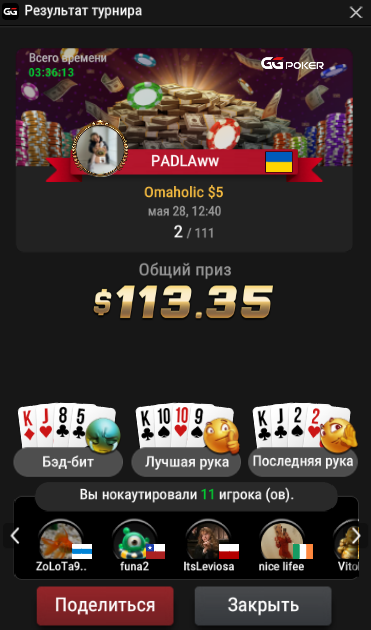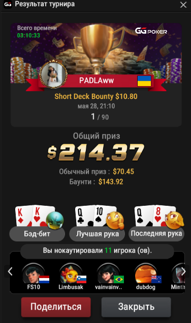 По порядку: 100 на коин. Первый день отыграл пару туриков. Вылетел на предфиналке с двумя тузами за финальный стек: это что может означать? - правильно, рум скам 😁 та я шучу да. На самом деле оч прик рум. У них своеобразное ГСЧ. Совсем не похоже на GG. Особенна я та хуйнюшка в угру которая якобы рандомайзит каждую раздачу - я ей верю😁. Первый день закончили в +30$ и под конец случился казус: открыл я GG поклацать АБи 2 и когда осталось два стола зашел на коин - кеш поднабить, а там чет рулетка захватила меня. то я ее крутил крутил и потом 0 на балансе. Ничего не понял как все произошло - ну как обычно 🤡 ну каму не похуй. все ровно решил что GG - это наше. через боль через слезы 😿