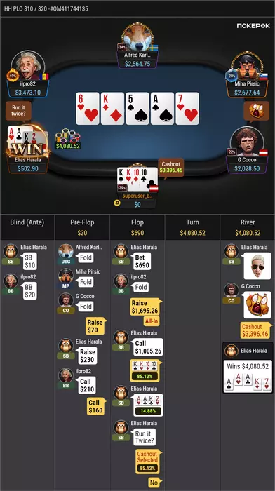 кэшаут это плюсово-) ибо пару проигранных раздач ввергают в тилт, а так взял и похую мороз!!