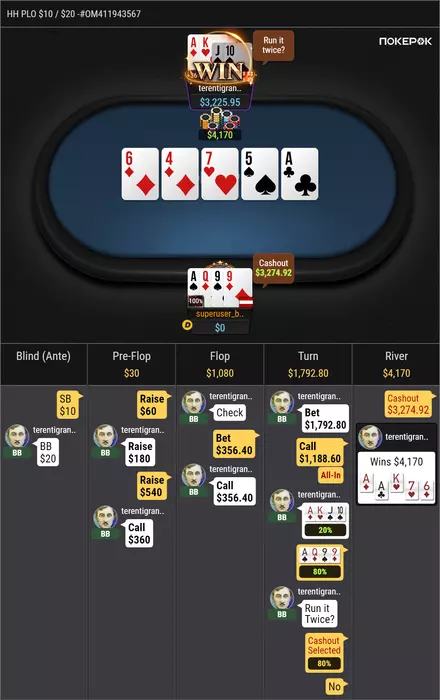 было принято решение брать кэшаут и вообще