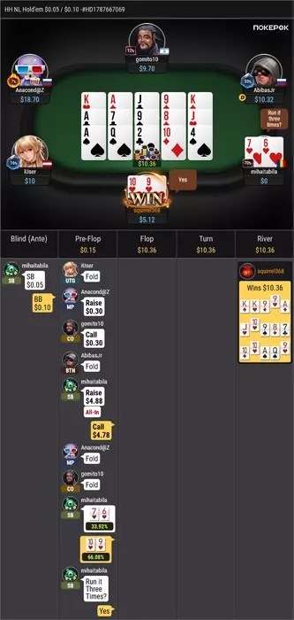 factorialis @ 21.05.24вообще пофиг на эту раздачу. дневник о том что я всегда играю против идеального оппонента. он никогда не совершает ошибок, у него всегда рука лучше. вам знакомо когда гатшот заrрывается? а когда бареллишь на флопе, терне с комбо-дро+оверкатры и тебе закрывается? знакомо? мне нет!!! я обещал здесь выложить первую раздачу когда мне доедет просто по шансам, а не допер на ривере. но мне никогда, НИКОГДА не доезжает. должна была дистанция за 10 лет что-то вернуть. нихуя.