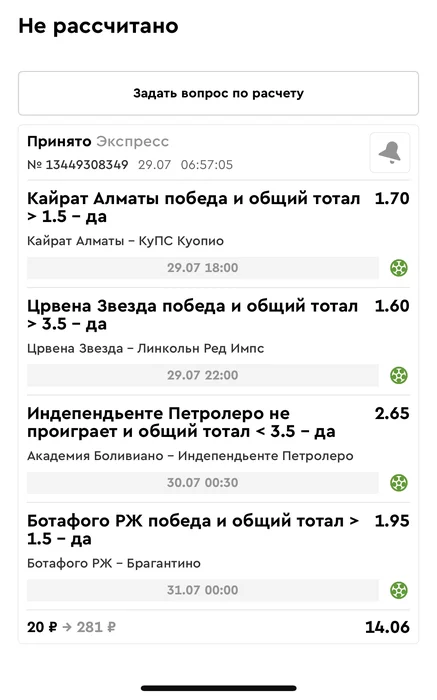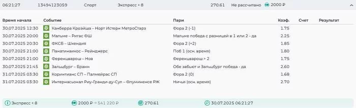 Мини экспрессы ежедневные за 30.07.25 все проиграли, Тотал доехал и мини8 проиграл. Итого банк +125 ₽ Банк 3923₽ -21,54%! Мини экспрессы на сегодня 31.07.25!