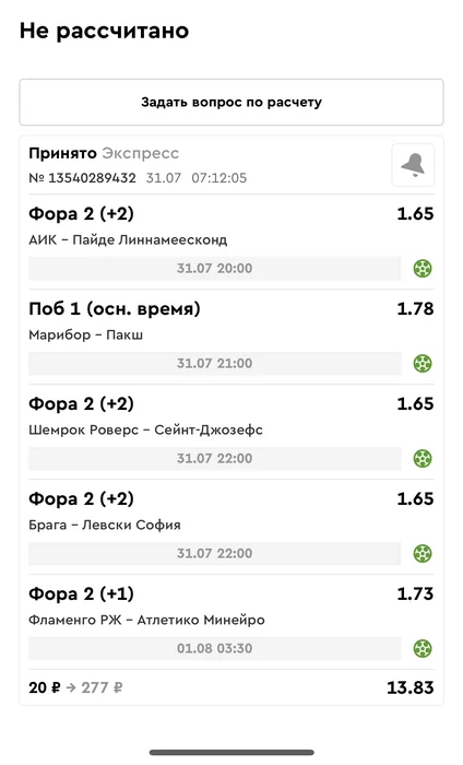 Мини экспрессы ежедневные за 31.07.25 все проиграли. Итого банк -60 ₽ Банк 3863₽ -22,74%! Мини экспрессы на сегодня 01.08.25!