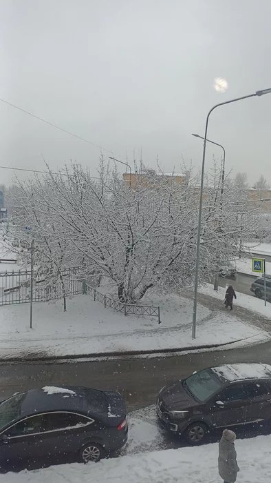 У нас сегодня выпал первый снег, но быстро растаял. За окном солнышко, что не очень типично для Питера.
