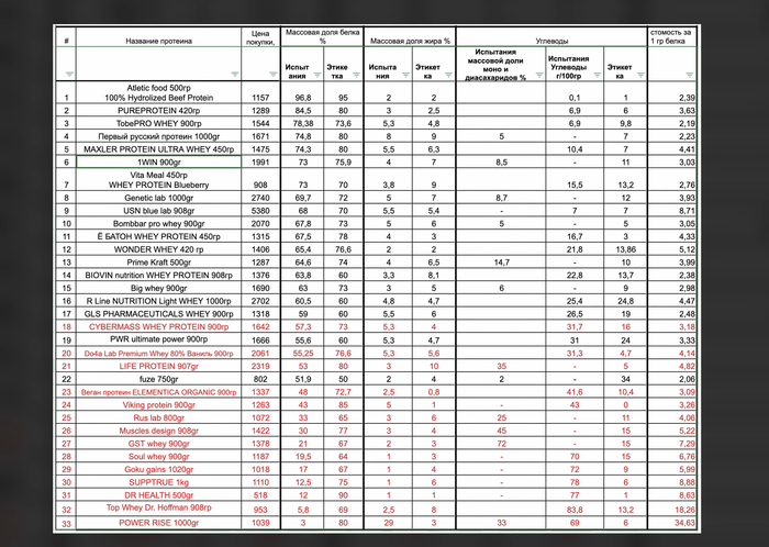 stiket, Привет, к сожалению в твоём протеине этой марки при заявленных 67% белка, только 17%