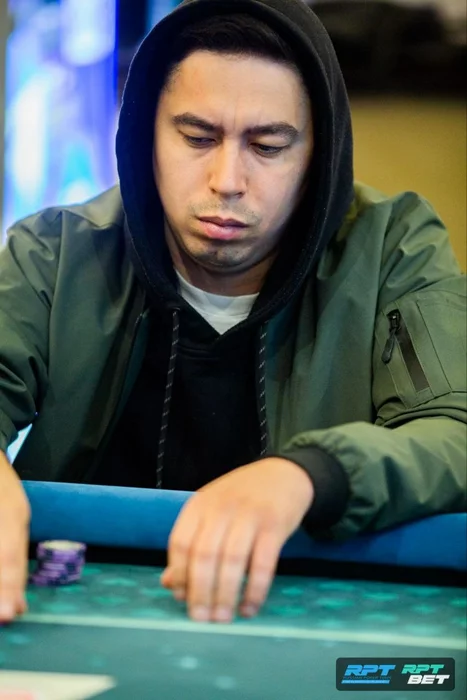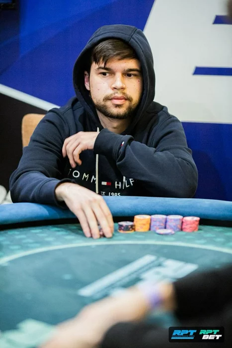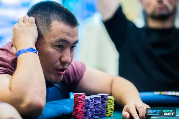 Алексей Капуза (75к, utg+2) сыграл недопуш 50к с и заколил пуш Меира Батырханова (620к, BU) с .