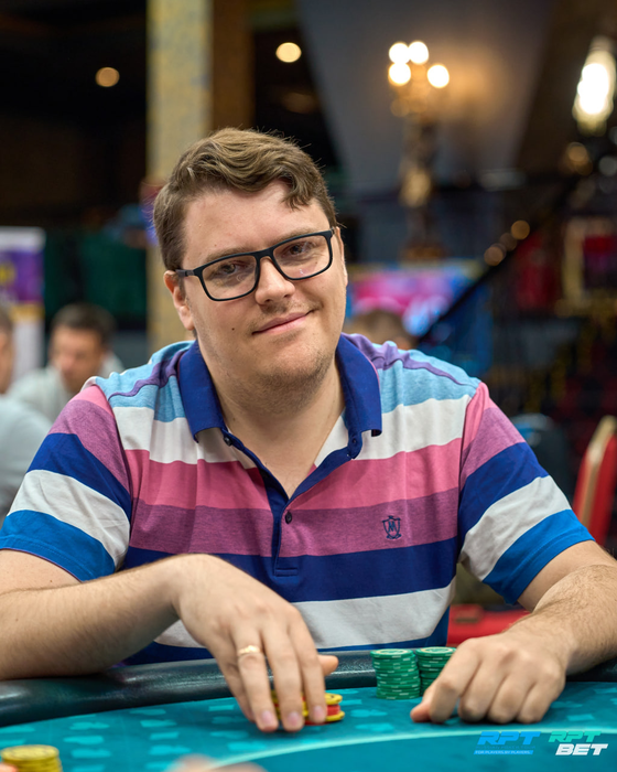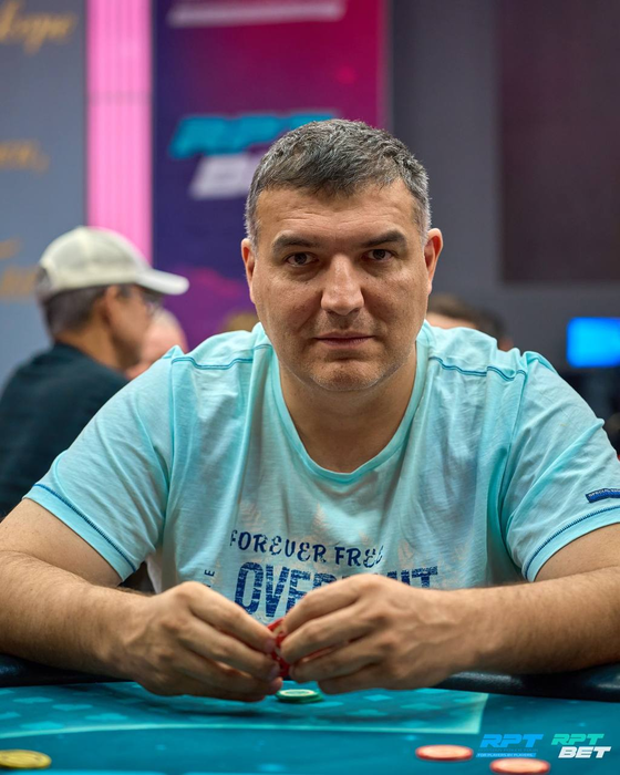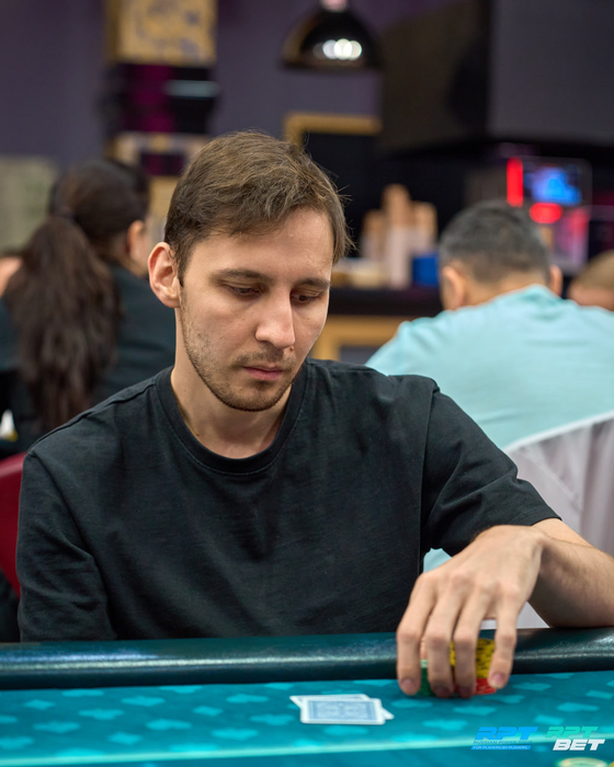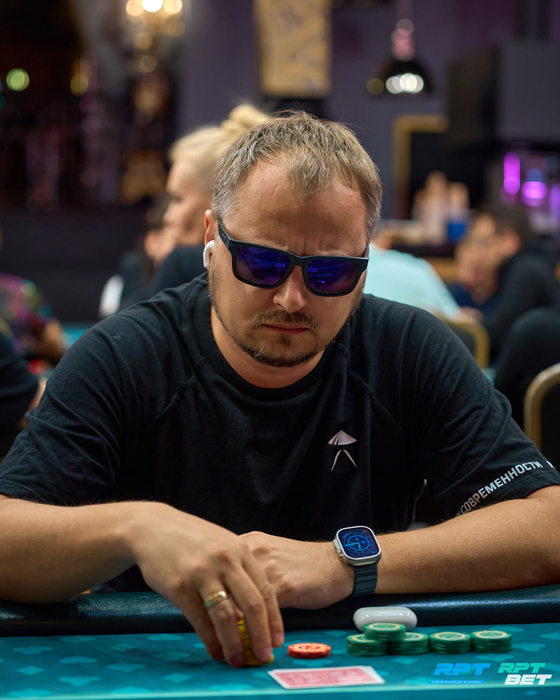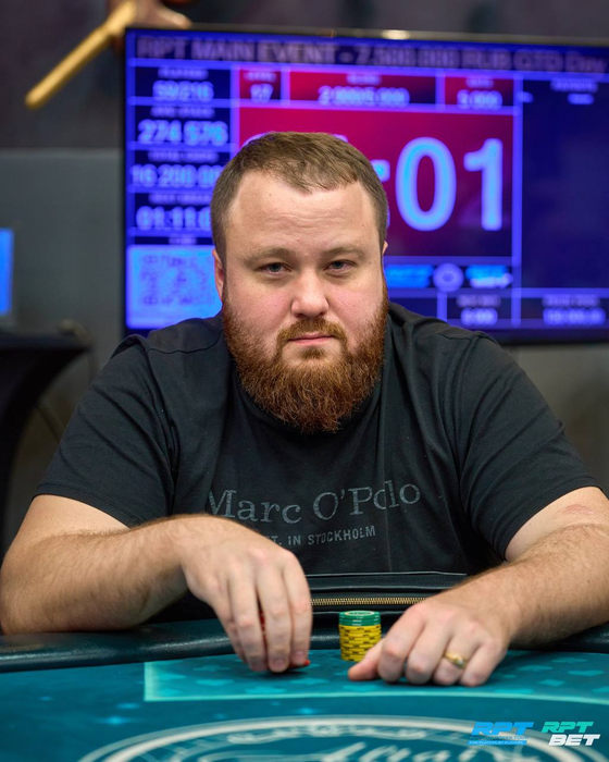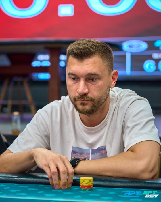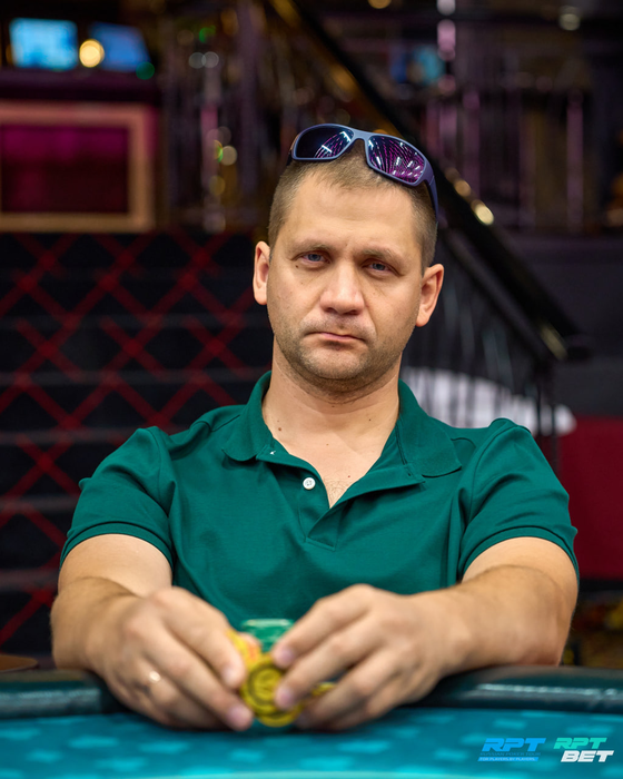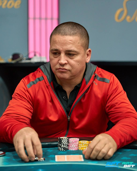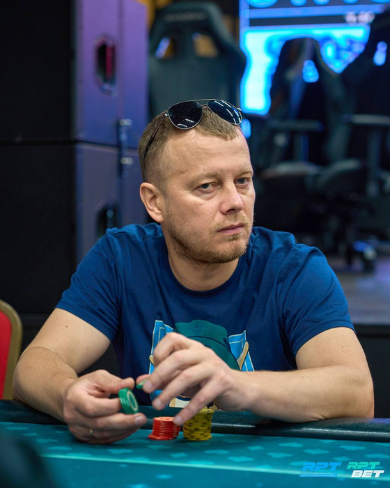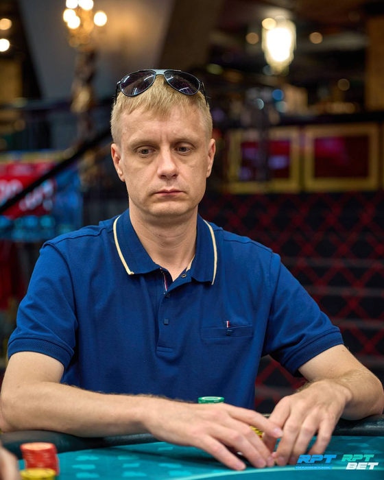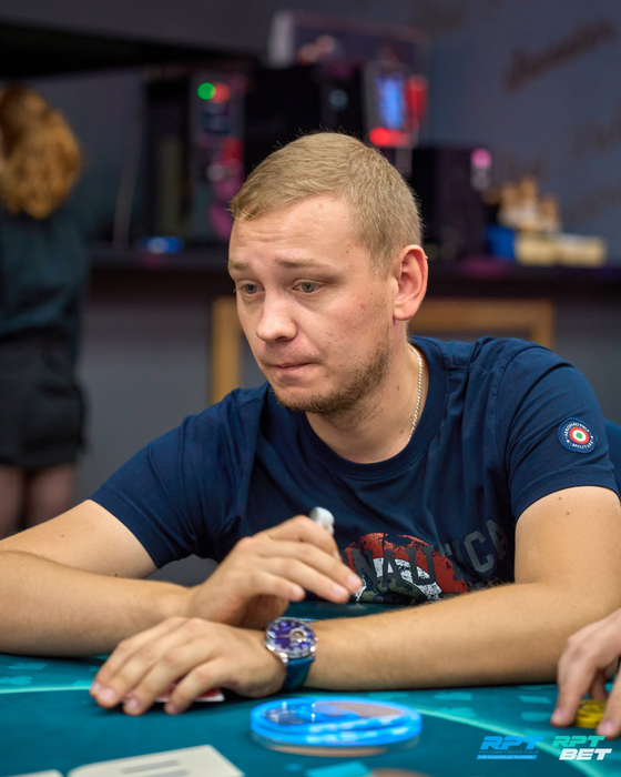 Несколько раздач спустя Анатолий с поздней выставился с о и был встречен Даниилом Шумиловым (~160K) с ВВ с . Терн и ривер принесли по тузу. Трипсом Даниил высаживает Анатолия из турнира.