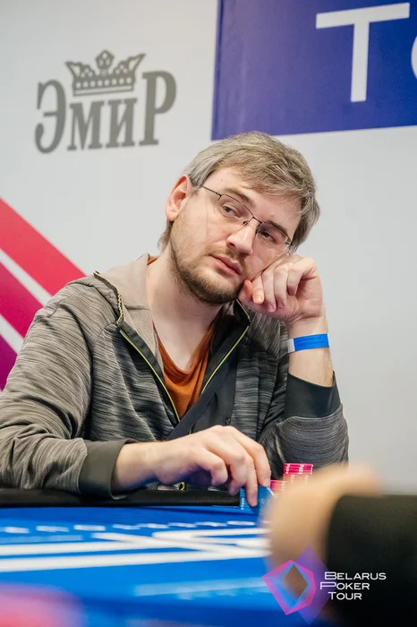 Николай Никонович отдал все свои фишки за 2 раздачи. Сначала проиграл выставление с в Игоря Порчука.