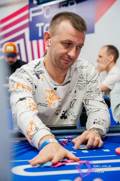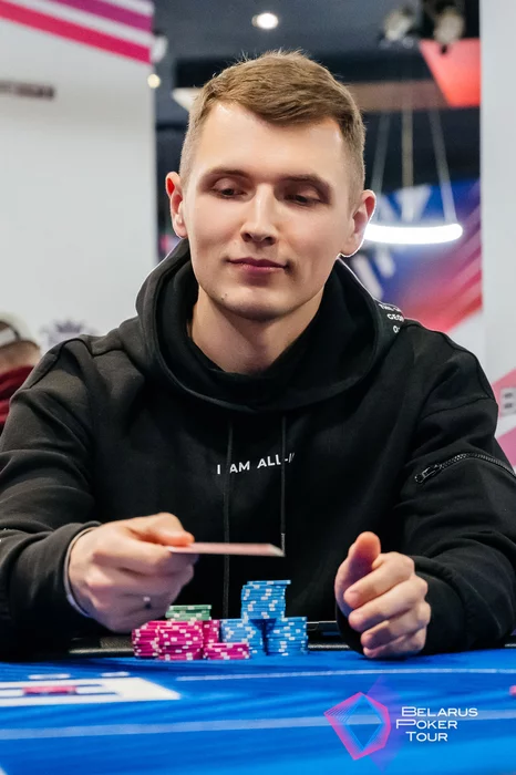 А Максим Фищук удвоился с против Олега Кагитина. Туза увидели в окошке.