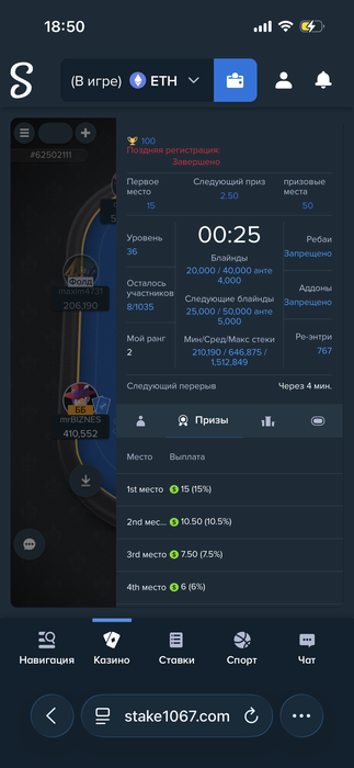 центролл, за 10 минут до конца периода реэнтри, у нас стек 40к на бб, утг-50к. У нас на бб 62, блайнды 80-160, утг лимпит, за ним 2 лимпа я чек, флоп 963, я чек, утг 160, лимперы пас я кол, терн 8, я чек, утг 160 я кол, ривер 6, я чек, утг 10к. Чьто делать? Думал пихнуть, но если он пустой какой в этом смысл? Если старше, я перед окончанием режнтри остаюсь без стека. Вколил и увидел 2 валета.