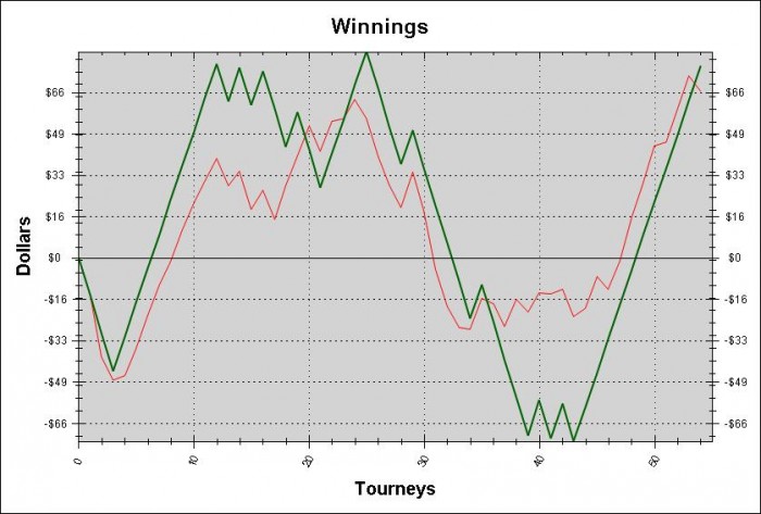 Если не смогу себя настроить на оптимальную игру, то делать в покере нечего. На графике все что сверху вниз это игра в агроманки стиле в чудовищном тильте. Все что снизу вверх это игра выспавшимся в хорошом ТАГ стиле, собранным, без единой помарки. Выводы очевидны.