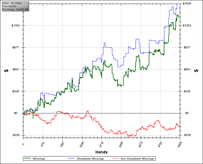 Пока что сыграл очень мало рук, т.к. играю на 4 столах, сессии по 300-700 рук. Тщательно провожу селектинг столов и чаще всего получается так, что в тот момент, когда я очень хочу поиграть просто нет ни одного нормального стола, чтобы на нём было меньше 4х человек в вэйтлисте. Зато когда я всё-таки нахожу самые классные столы, мне отлично раздают и проплачивают.
