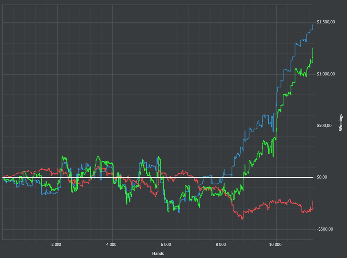 BB: $367.93 (367.9 bb)UTG: $136.42 (136.4 bb)MP: $113.43 (113.4 bb)