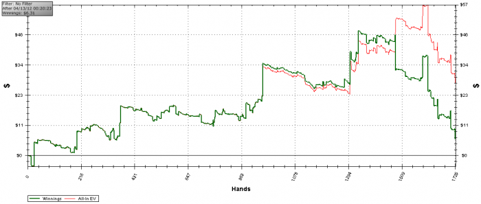 smax @ 9.4.2012 по последней раздаче: флоп ставим к-бет гдето 1.1$ терн продолжаем гдето 2.8$ по риверу можно играть либо блок бет в треть пота, что мне тут не очень нравится. Лучше чек-колл - блефкатчим недоехавшие дрова