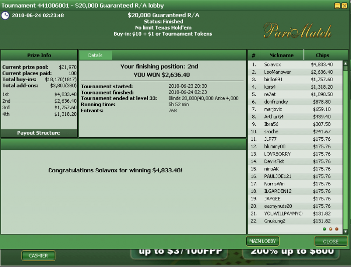 Впрочем, некоторые вылеты были и из-за собственных ошибок. Вроде в ближайшие три дня много играть не собираюсь, по-любому надо немного отдохнуть от покера, чтобы набраться настроя.