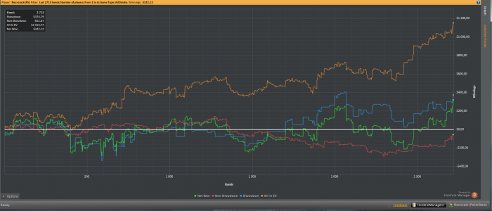 Возможно, это связано с тем, что я играю на телефоне , там плохо видно плюс играю только когда еду на работу или с нее , в смысле в пробке стою В такой ситуации особо не пофееришь, поэтому приходится играть в тайтовый АБЦ покер, вот оно и приносит плюс, может, поэтому?