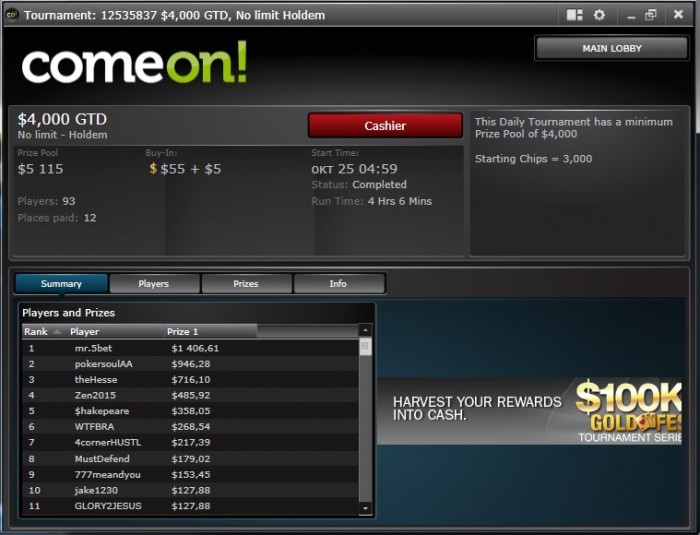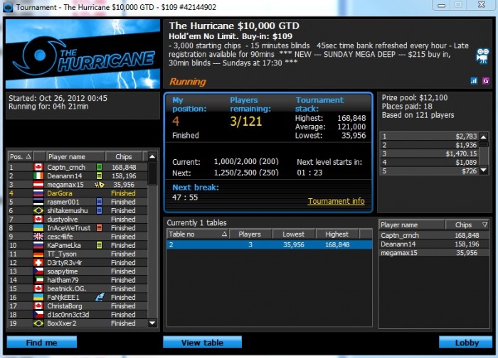 On Game, $100 Buy-in (600/1,200 blinds, 120 ante) No Limit Hold'em Tournament, 6 Players Poker Tools Powered By Holdem Manager - The Ultimate Poker Software Suite.