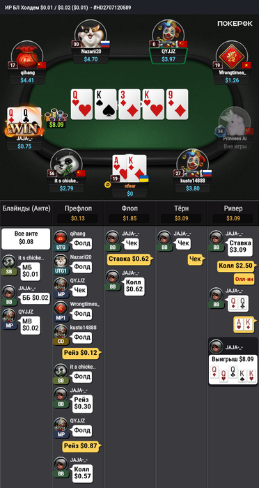 Я пока ненаучился находить фолд в таких раздачах. Возможно это моя ошибка.