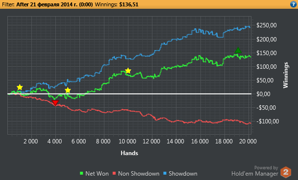 ПС Еще меня сегодня посещали капитанские мысли о том, что я мало играю. Люди работают на обычных работах по 8-12 часов в день, а я трачу на покер в основном 3, иногда максимум 4 часа. Теперь буду стараться играть 5 часов в день, дальше попробую увеличить до 6.