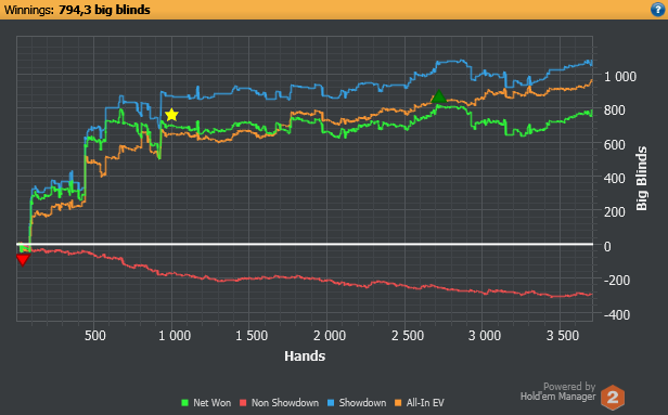 Когда дела в покере не складываются, я открываю марафон Экслида и перечитываю его отчеты. Это придает определенной уверенности, особенно когда видишь у него стрики на пару сот столов.