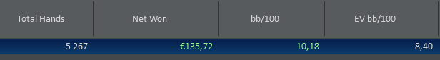 Но есть пара моментов которые опы могут эксплоатит. Во первых я возможно часто падаю на 2ой барель в 3бет поте(пока что семплов мало, не могу точно сказать) и так же у меня зашкаливающий чек\пас и цбет\фолд на флопе. Не думаю что это прям уж эксплоатят, но буду учитывать, что парочка думающих опов могут чуть шире в меня дабл барелить в 3бет поте и рейзить флопы в рейженых потах.