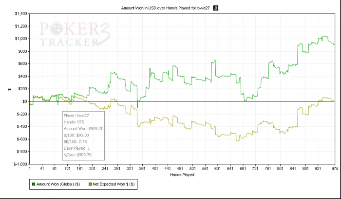 Отыграл ещё одну сессийку в +900, но собственно весь плюс из-за перебора. У меня до сих пор большой недобор на нл600, так что особо по этому моменту не парюсь, пусть отдают, гады :)
