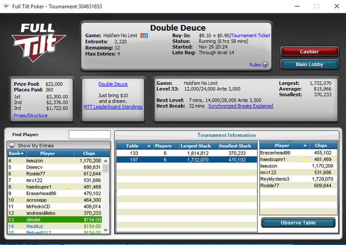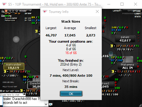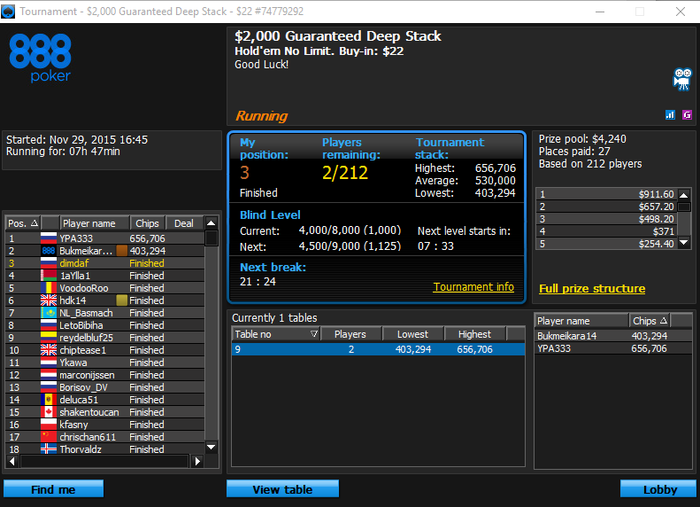 Эмоций нет. Все обыденно. Фиш съел важную часть моего стека. А то, что осталось реализовать не удалось. Ушел 13-м.