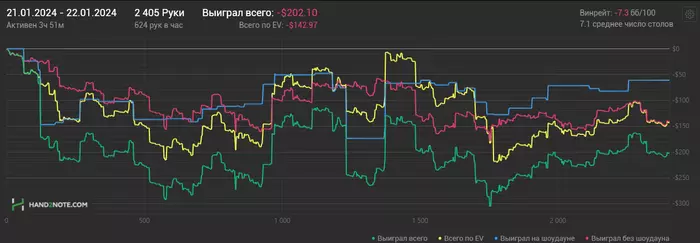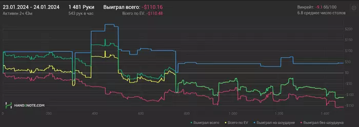 24/01/2024: 2.43ч, 1481 рук nl100 -$97.