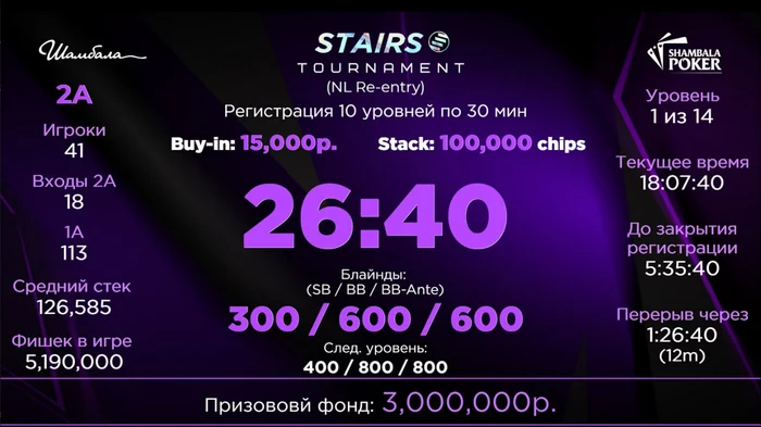 Начали день 2А, стек был 80к, удвоился АА в QQ, стек 155к.