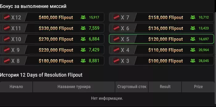 когда ты переходишь на следующий уровень, тебе анрегает из турнира и регает в следующий. Соответственно, не все начали выполнять задания в первый день поэтому кто то не сможет выполнить все 12 заданий и от сюда такой разброс во всех турнирах