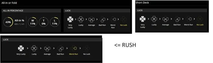 тоже играю по чуть-чуть во все подряд , в раше где-то переапался😁 простые кэш столы пишет недостаточно даты, но там тоже недоборы по ев. во вкладку турниры вообще боюсь заходить🙊