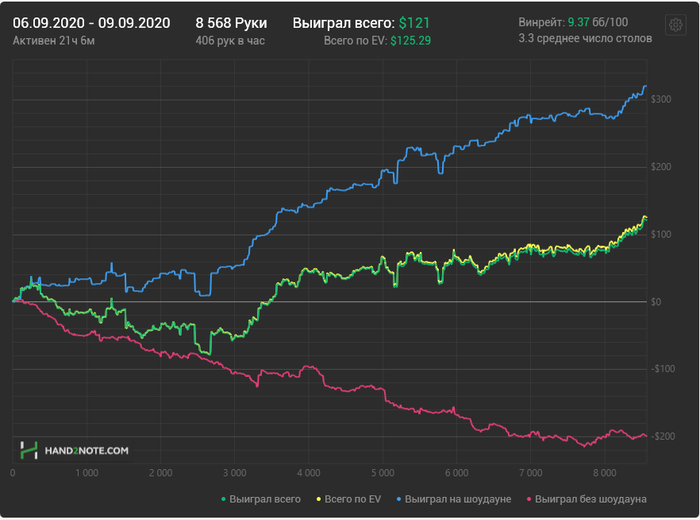 Все раздачи сыграны в рамках одной сессии.