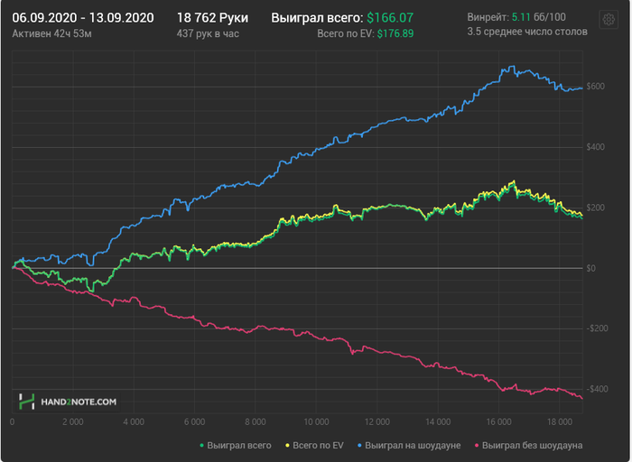 БР по тихой тает , скоро ещё делать крупный кэшаут на жизнь , спускаться полностью на 16ку пока рано , но блять сентябрь просто летит в какую-то залупу с бешенной скоростью. Я просто хз как можно улететь с пика на -200+ за 2 сессии , когда за столом сидят по 2-3 фиша с впипом 50-60+