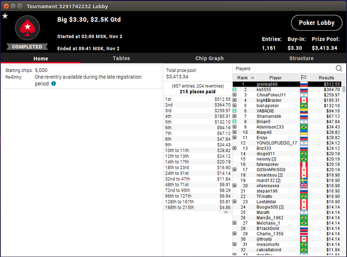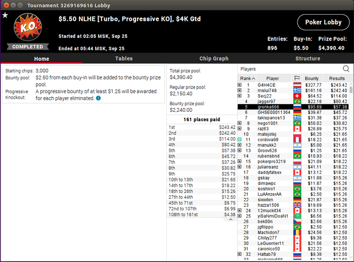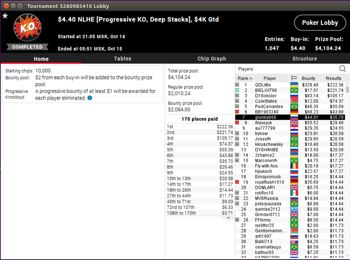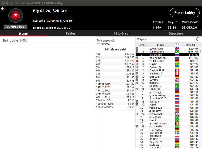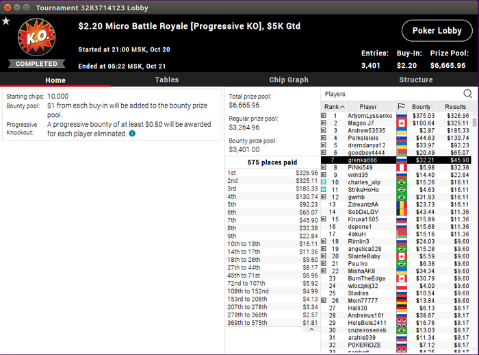 С фильтром от 0 до 60 и ББ более 200 за 673 турнира: