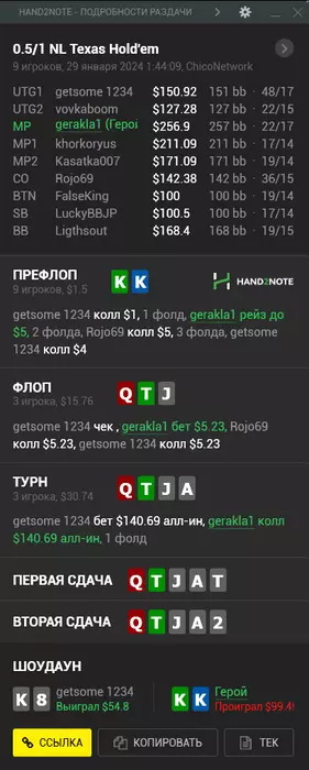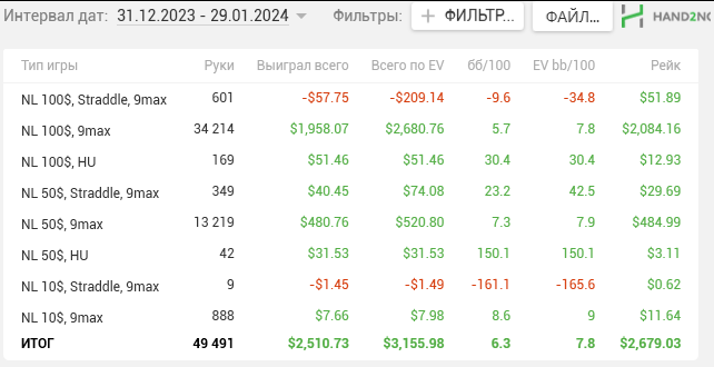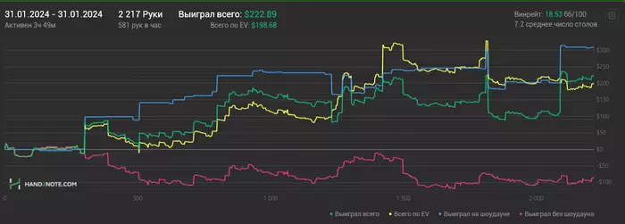 01/02/2024: 3.49ч, 2217 рук nl100 +$220.