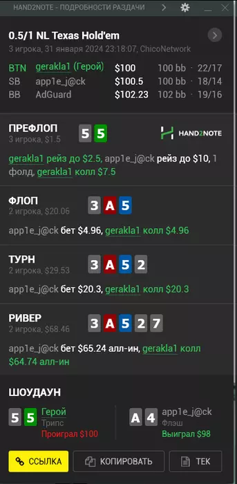 Сегодня игралось не очень, в этой раздаче против супервипа в дипах проиграл два из трёх бордов: