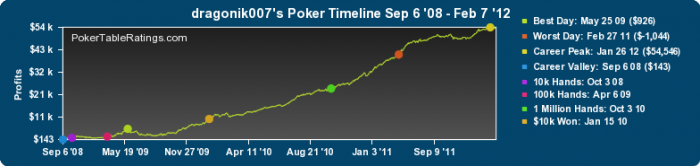 А вобще я доволен сменой стратегии, еще никогда не чувствовал себя настолько уверенно за двумя столами. Сложных ситуаций намного меньше, хотя безумия иногда хватало, т.к. подстраиваться под тильт тоже нужно: