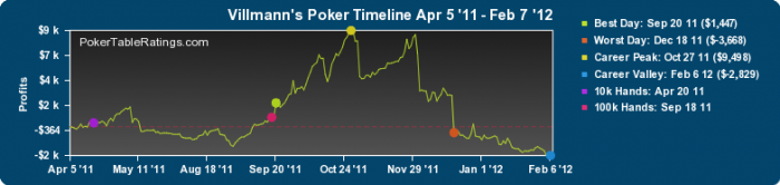 С удивлением сейчас увидел его график, вобще я играю без ПТР, он у меня даже не оплачен. Видимо, у него есть проблемы с тильтом. Я сам, будучи в тильте, много ему проиграл в прошлом году, но тогда он показался мне ABC без вариантов (мало ли в тильте покажется!). Сейчас он сыграл матч настолько четко, что стал единственным, от кого я ушел на этой неделе после сотни раздач. Просто стало ясно, что я потеряю время ради профита в 0.0003бб/100 в лучшем случае. Хотя теперь, глядя на график, становится понятно, что выставиться с ним по A6 на доске J85 в начале матча может быть очень прибыльно, даже если переезда не случится ) Пожалуй, не буду объяснять тонкости этой стратегии.