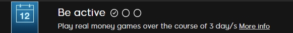 Таким образом, если вы набрали максимальное количество очков по заданию Hit the Poker Tables, и этого не хватило для достижения следующего уровня, то вам нужно выполнить другие задания (например, Be Active), чтобы набрать недостающие очки.