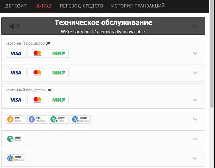 Скажите у всех такая картина?Несколько дней не могу вывести деньги.Депозит норм проходил с карты и по сбп за считаные секунды.Поддержка помогите с решением этого вопроса.