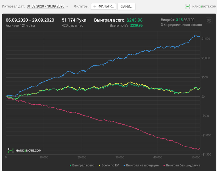 Ран был действительно один из самых херовых , не получалось абсолютно ничего , в каждом банке или тёрн или ривер тупо убивал мои 60-70% эквити , ну и ошибок конечно же тоже много сделал. Не простительно много , появилась какая-то неадекватная телефония , знаю что надо фолдить , но почему-то продолжаю проплачивать всем их комбинации.